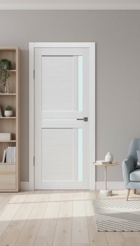 Межкомнатная дверь в современном стиле. Царговая конструкция двери позволяет произвести замену любой поврежденной детали. Каждый элемент двери выполнен из качественных материалов - сосна/МДФ высокой плотности/сендвич-панель и окутаны ПВХ-пленкой. За счет использования в конструкции двери высокопрочных материалов, дверь устойчива к влаге и механическим повреждениям, легка в уходе.