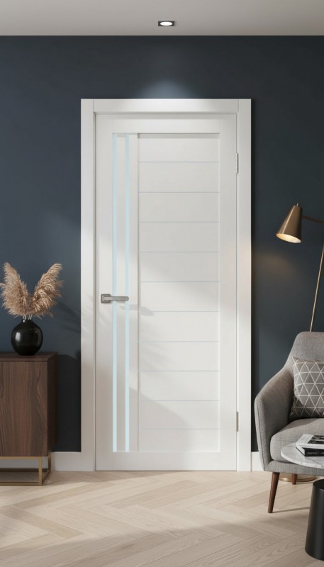 Межкомнатная дверь в современном стиле. Царговая конструкция двери позволяет произвести замену любой поврежденной детали. Каждый элемент двери выполнен из качественных материалов - сосна/МДФ высокой плотности/сендвич-панель и окутаны ПВХ-пленкой. За счет использования в конструкции двери высокопрочных материалов, дверь устойчива к влаге и механическим повреждениям, легка в уходе.