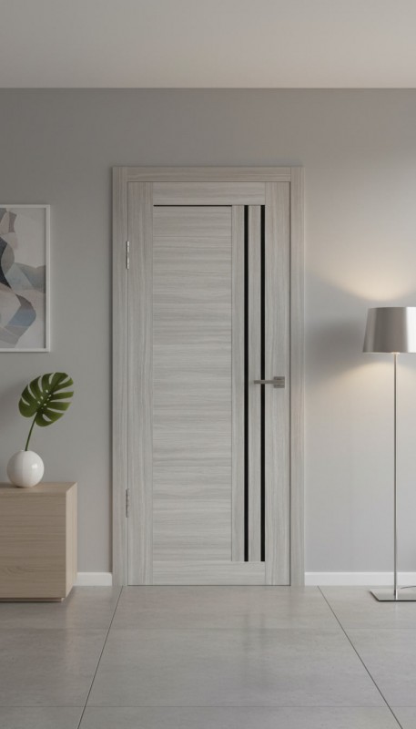 Межкомнатная дверь в современном стиле. Царговая конструкция двери позволяет произвести замену любой поврежденной детали. Каждый элемент двери выполнен из качественных материалов - сосна/МДФ высокой плотности/сендвич-панель и окутаны ПВХ-пленкой. За счет использования в конструкции двери высокопрочных материалов, дверь устойчива к влаге и механическим повреждениям, легка в уходе.