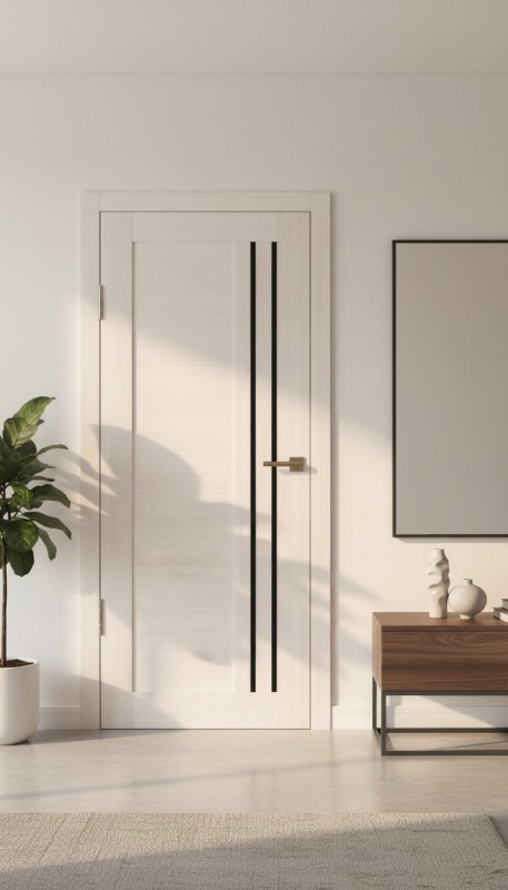 Межкомнатная дверь в современном стиле. Царговая конструкция двери позволяет произвести замену любой поврежденной детали. Каждый элемент двери выполнен из качественных материалов - сосна/МДФ высокой плотности/сендвич-панель и окутаны ПВХ-пленкой. За счет использования в конструкции двери высокопрочных материалов, дверь устойчива к влаге и механическим повреждениям, легка в уходе.