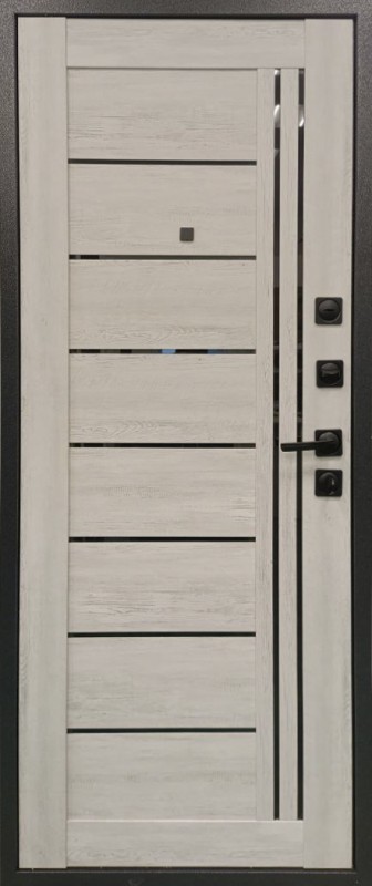 Размерный ряд: 860*2050 левая, 860*2050 правая, 960*2050 левая, 960*2050 правая. Входная дверь ALD 800 Зеркало в цвете санторини белый имеет современный дизайн. Дверь имеет сочетание зеркала со вставками из чёрного стекла лакобель. Внешнее покрытие Антик серебро, удобное в уходе покрытие. Внутренняя отделка выполнена в цвете санторини белый